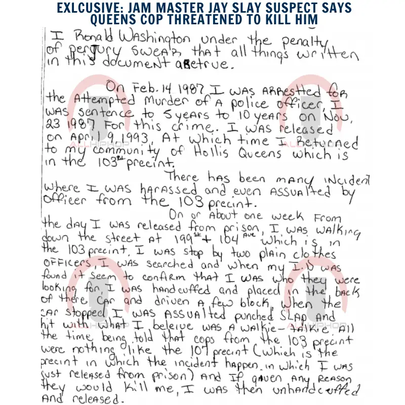 Washington was eventually sentenced to a 5 to 10-year prison sentence for that offense, but he claimed cops with 103 Precinct harbored an “extremely hostile attitude” towards him way before Jay’s murder, and unfairly targeted him for abuse.