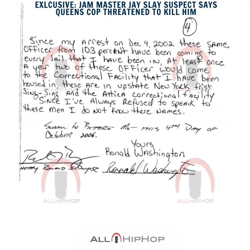 Washington says a cop from the 103rd Precinct ramped up his threats against him in October of 2002, shortly after his name started to surface in the murder of Jam Master Jay.