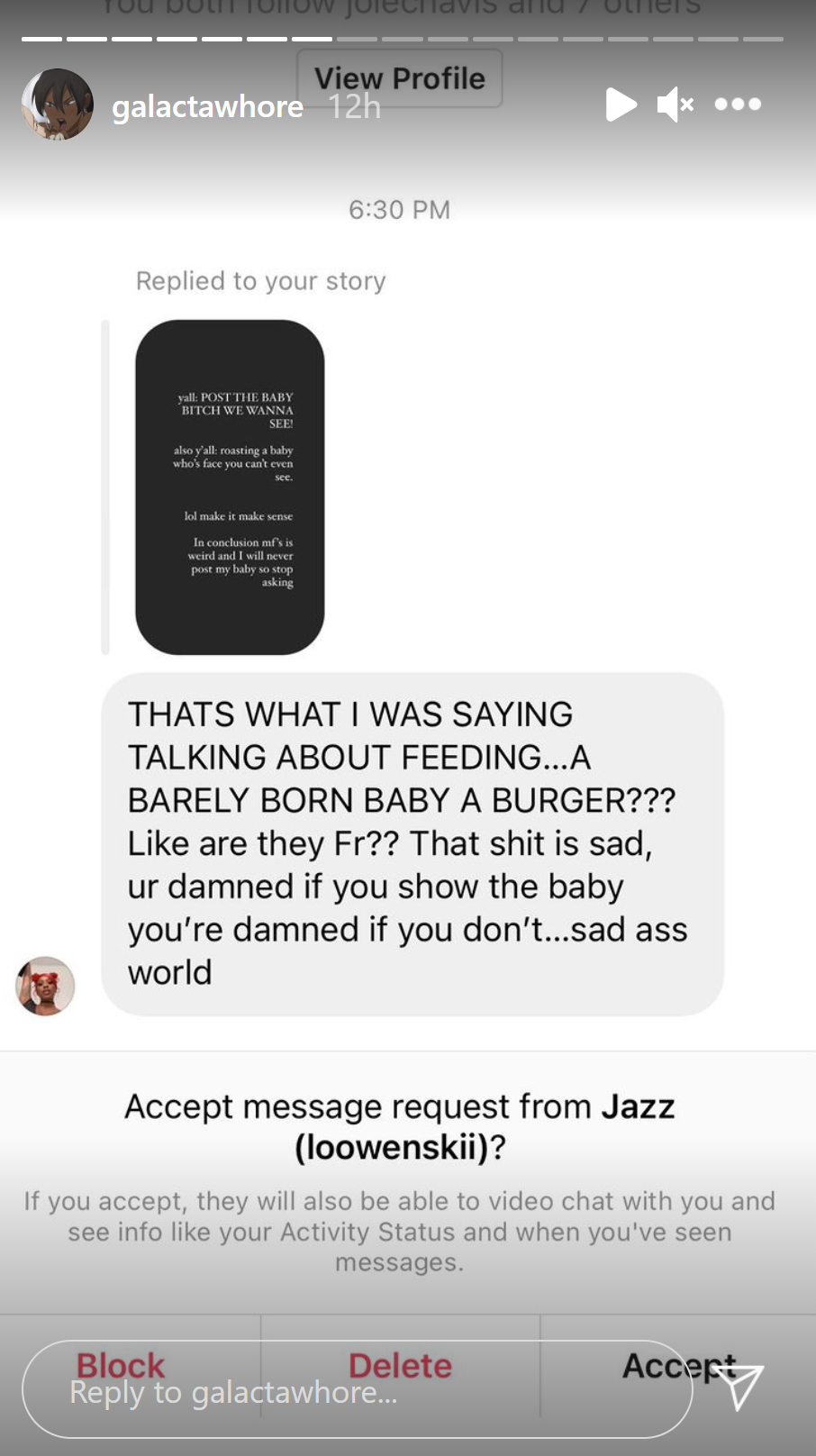 Some social media users even suggested local child protective services need to check on the baby. Summer Walker got wind of the conversation taking place online and responded to the backlash on her @galactawhore page.