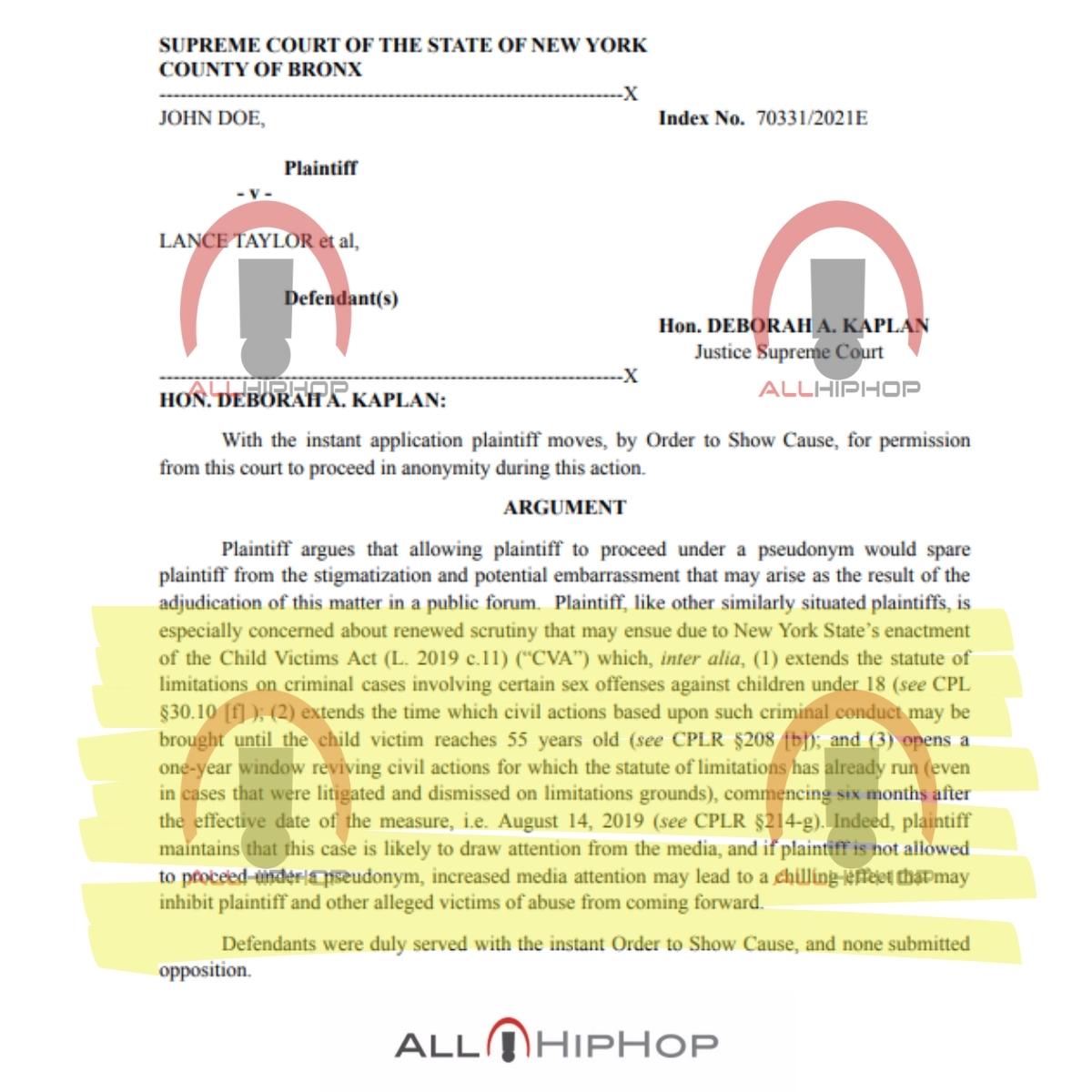 Because Bambaataa nor his legal representation have replied to the civil suit, John Doe’s request was granted by Judge Deborah A. Kaplan.