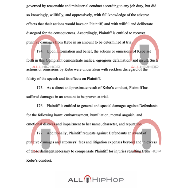 Cardi B’s lawyer Lisa Moore said Tasha K.’s “defamatory statements have caused embarrassment, humiliation, mental anguish, and emotional distress” and have damaged her profession and industry, including but not limited to among her fans and with prospective business relations.”