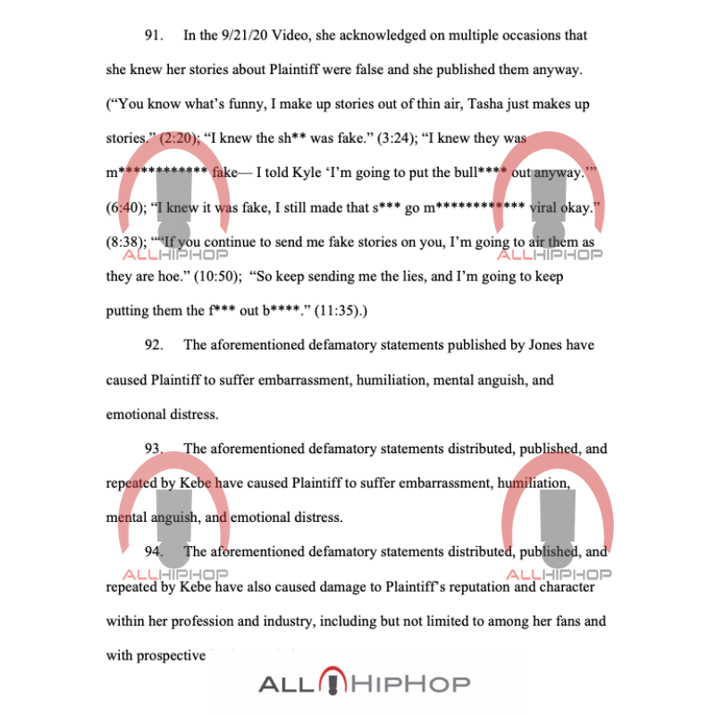 “You know what’s funny, I make up stories out of thin air, Tasha just makes up stories,” Tasha K. admitted according to the lawsuit. “I knew the s### was fake….I knew they was m############ fake…I still made that s### go m############ okay.”