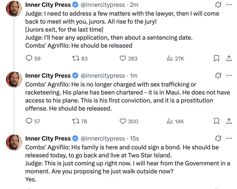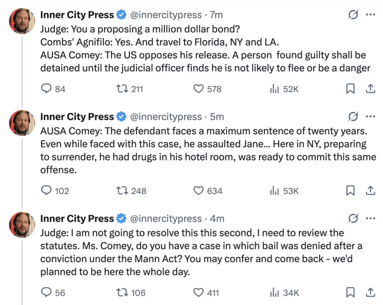 Judge Subramanian noted, “Mr. Combs does not want to go back to the MDC, he is shaking his head,” before instructing all parties to submit their arguments by 1 p.m., with court set to reconvene later that afternoon.