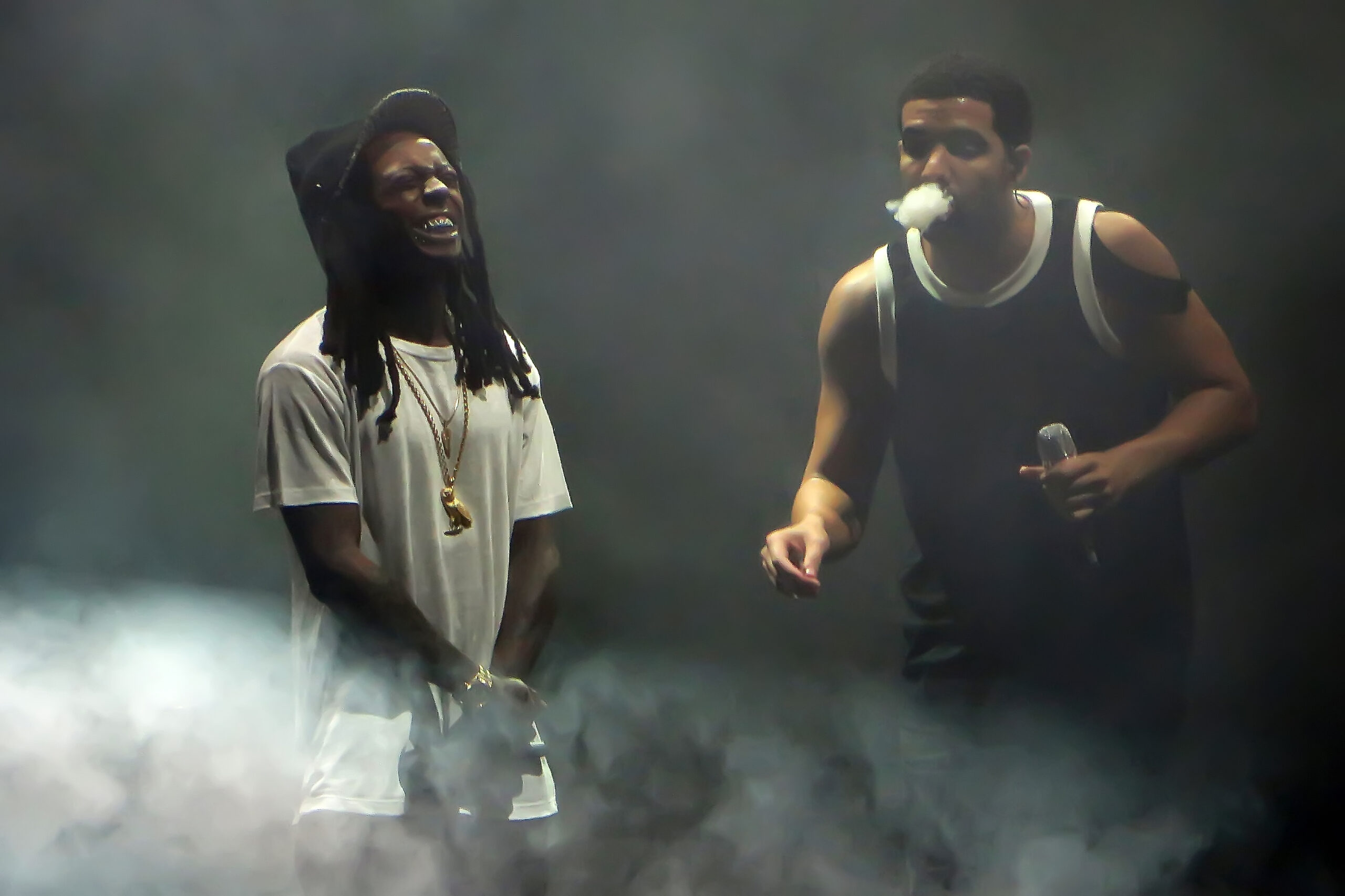The Drake vs Lil Wayne battle concert, held at the legendary Forest Hills Stadium in Queens. During the gig Drake, who won this performance, flew across the crowd on a motorized pedestal. Featuring: Lil Wayne, Drake, Aubrey Drake Graham Where: Forest Hills, New York, United States When: 19 Aug 2014 Credit: Maria Fitzsimons/WENN.com