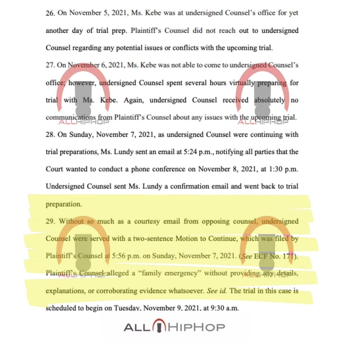 “Ms. Kebe had to block off two weeks of her schedule, even though she is self-employed and cannot make money if she is not actively working. But, because Ms. Kebe has always taken the lawsuit seriously, she sacrificed her time and earnings to ensure her readiness for trial on November 9th, 2021,” Tasha K.’s lawyer Olga Izmaylova said.
