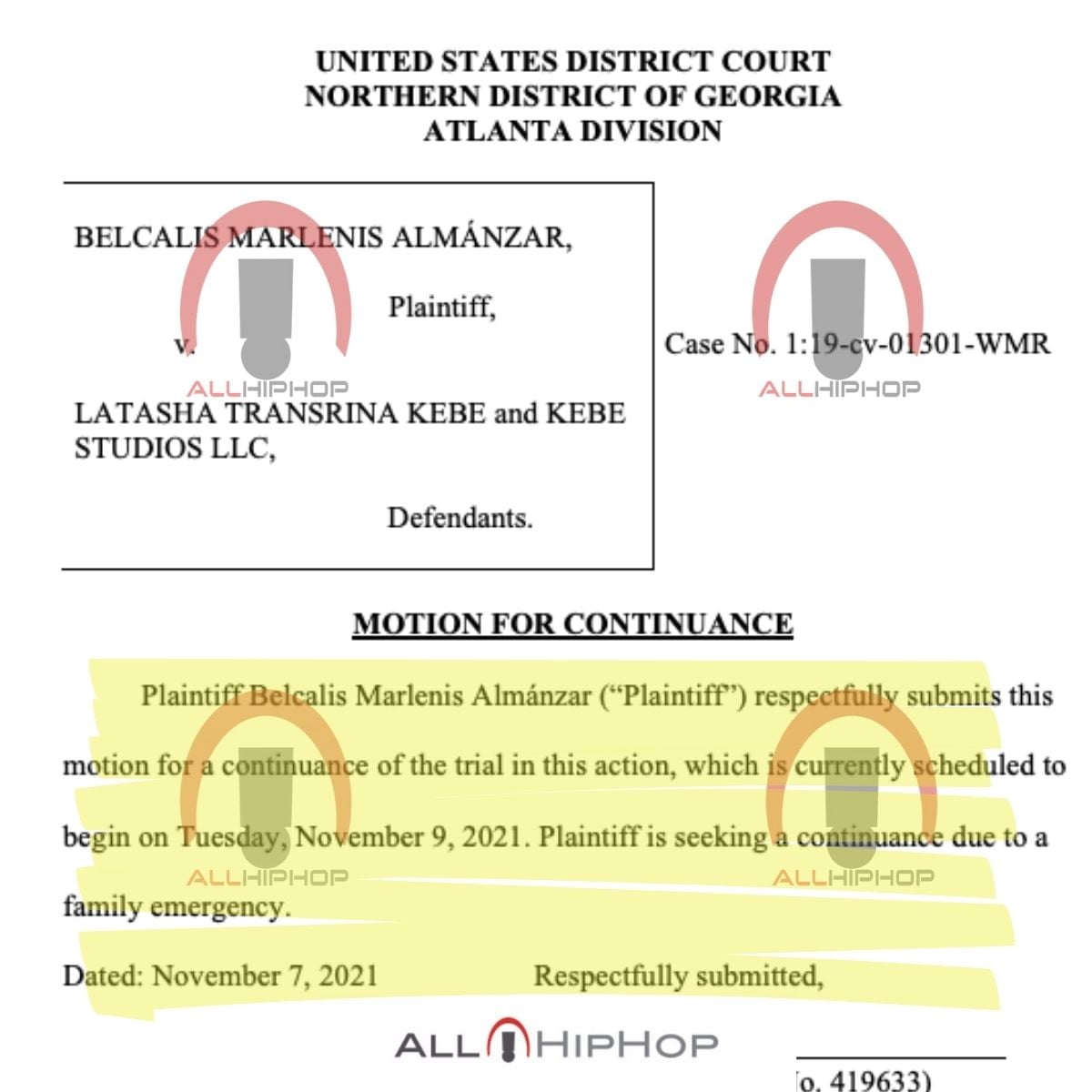 Yesterday, Cardi B lawyer filed docs asking for the trial to be delayed due to what she told the court is a family emergency.