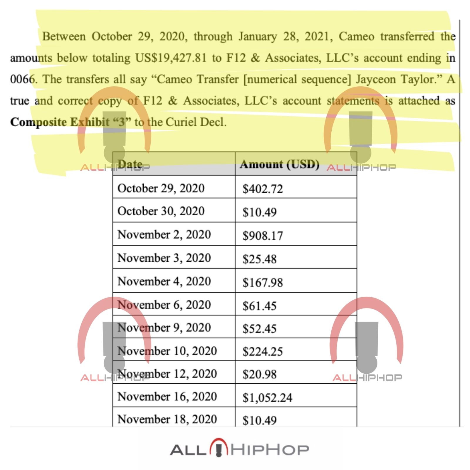 Rainey insists Game, born Jayceon Taylor, made almost $20,000 between October 29, 2020, through January 28, 2021, which Cameo transferred to F12 & Associates.