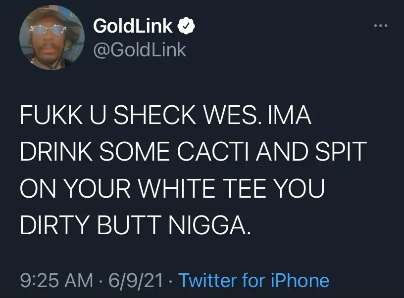In a series of tweets dated June 9, GoldLink took direct shots at Harlem-raised rhymer Sheck Wes. He called the “Mo Bamba” hitmaker unattractive and brought up a prior physical altercation that reportedly ended in gunfire.