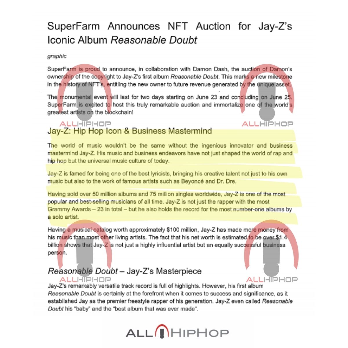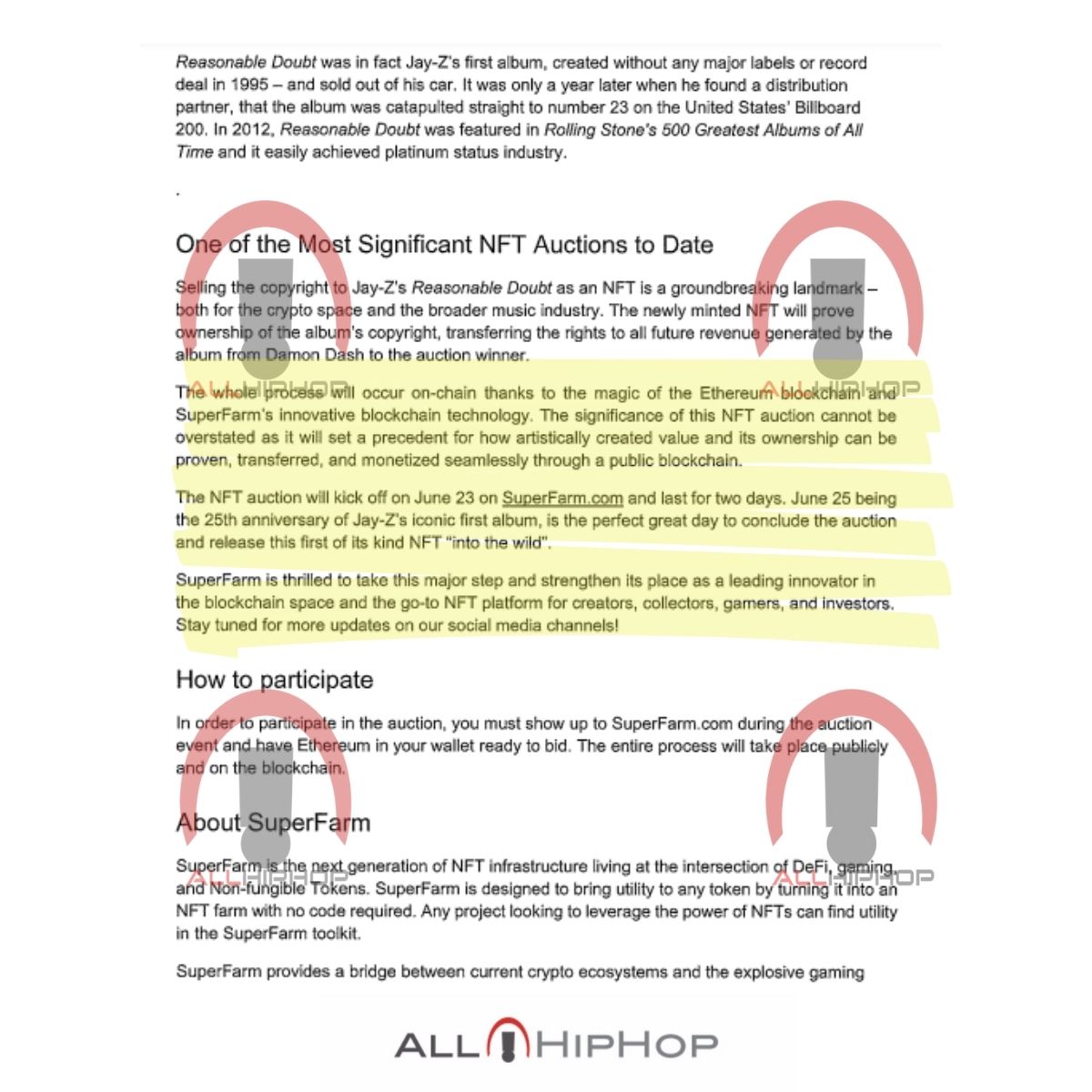 Spiro referred to an unreleased press release Damon and SuperFarm drew up to hawk Reasonable Doubt as an NFT. According to Alex Spiro, Damon Dash was hoping to earn $30 million by selling Reasonable Doubt as an NFT through SuperFarm.