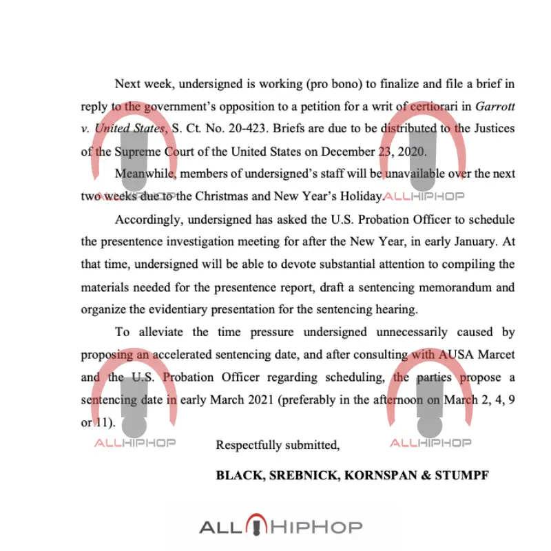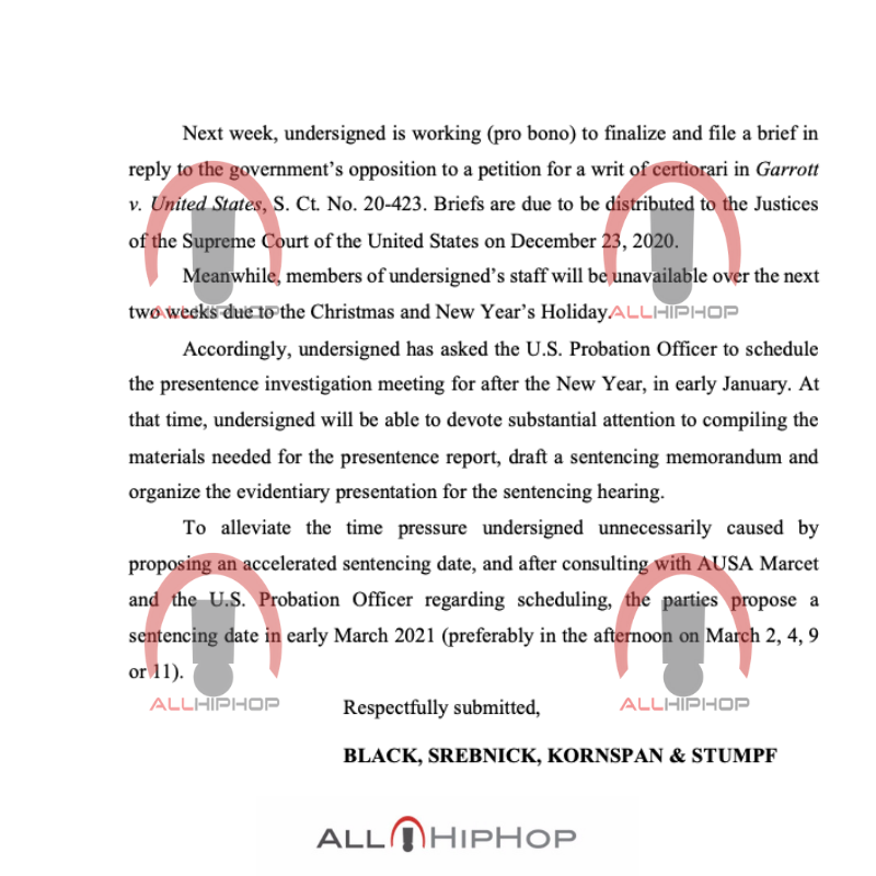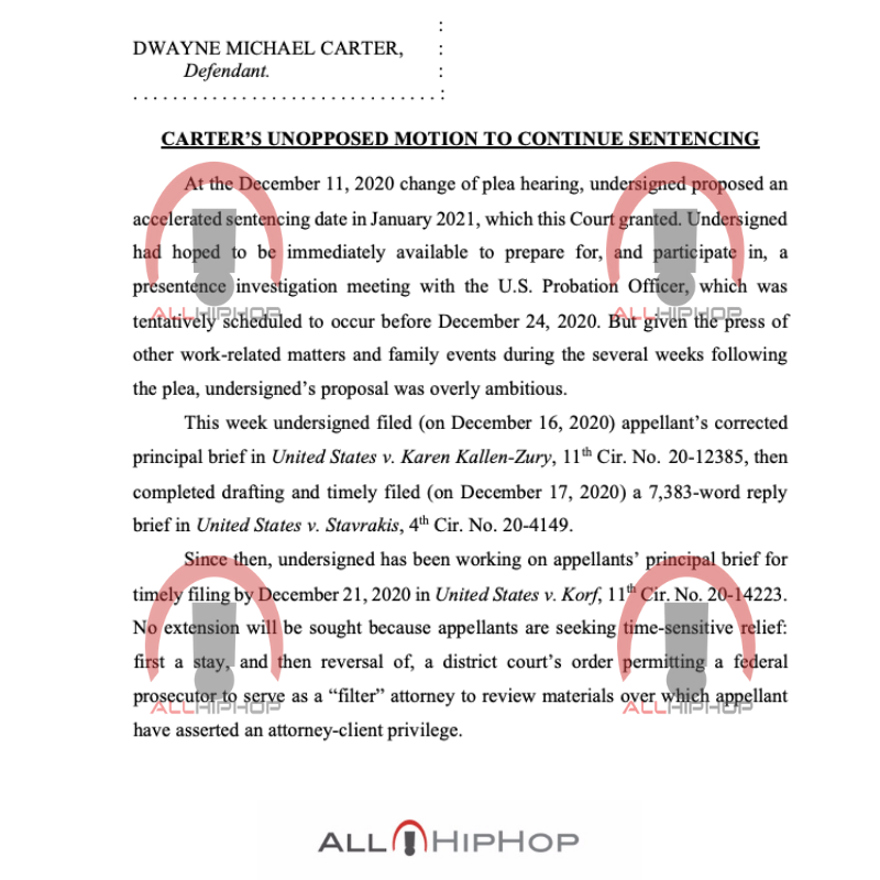 However, Wayne’s lawyer just submitted a new request to the court asking for the rapper’s sentencing date to be pushed back.