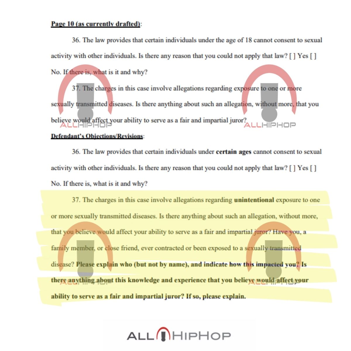 “The charges in this case involve allegations regarding unintentional exposure to one or more sexually transmitted diseases…have you, a family member, or close friend, ever contracted or been exposed to a sexually transmitted disease? Please explain who (but not by name), and indicate how this impacted you?’ reads one question.