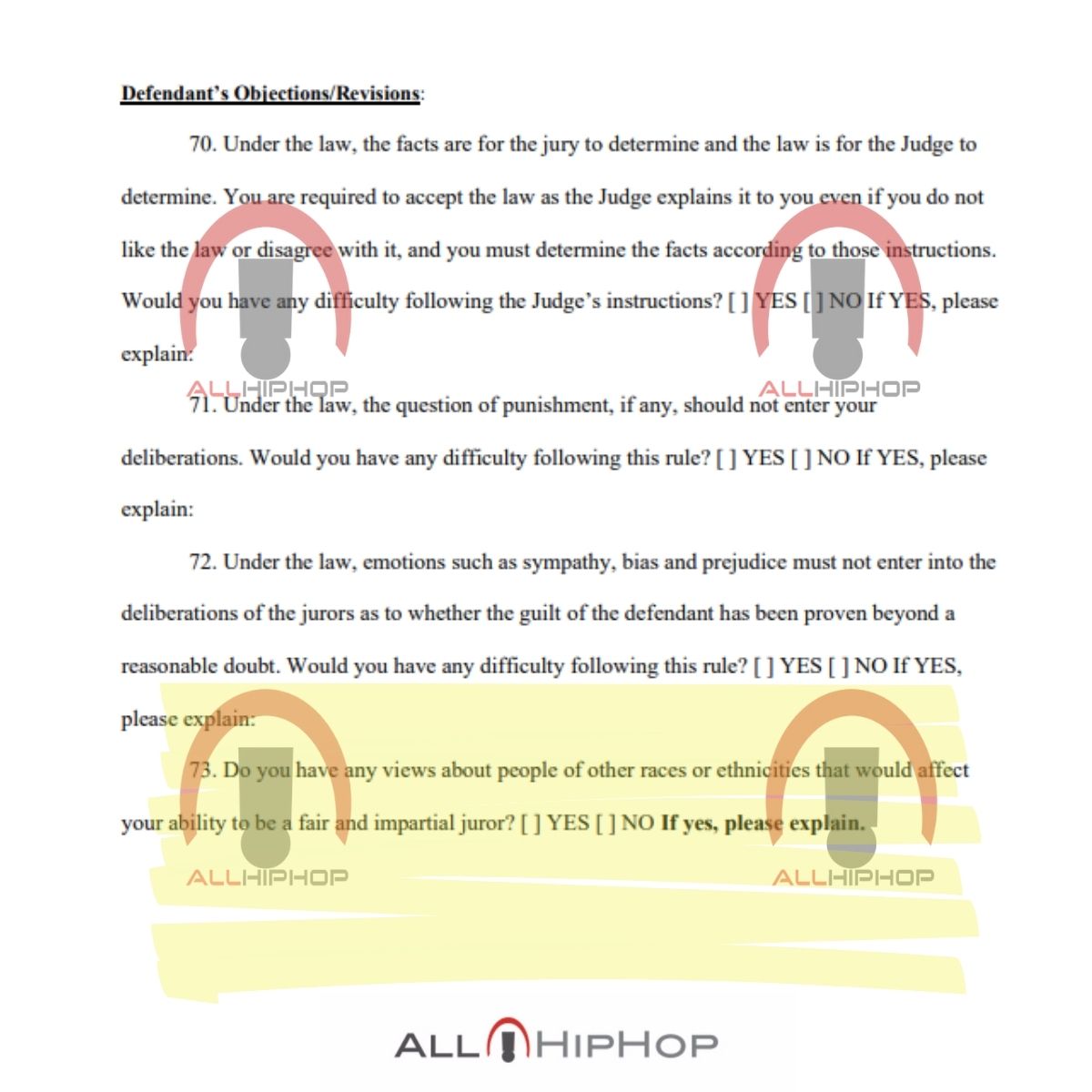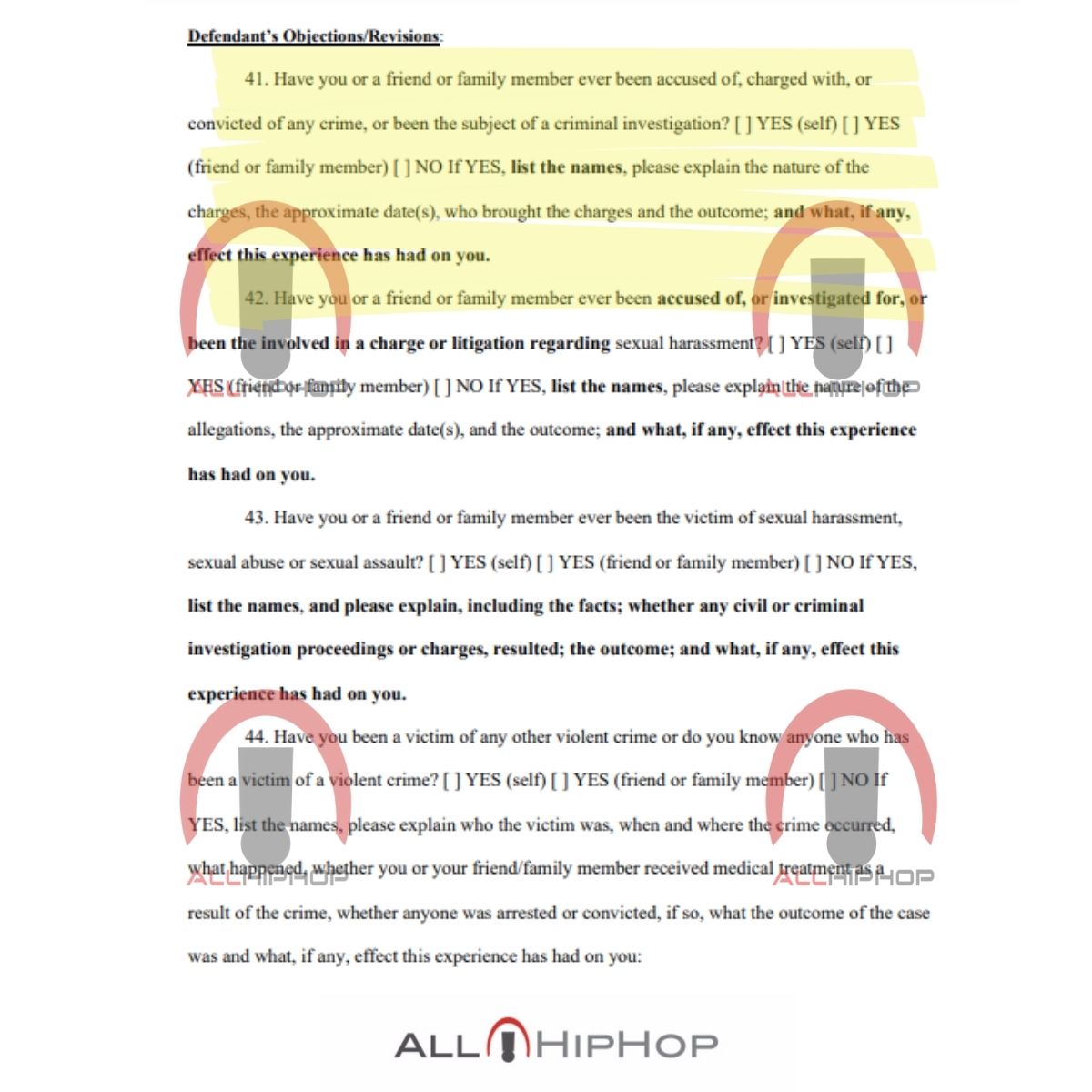 Potential jurors will have to answer several personal questions, as the singer tries to find the most favorable pool of anonymous jurors. AllHipHop.com obtained a list of questions, and potential jurors are warned that they will be asked some really personal questions: