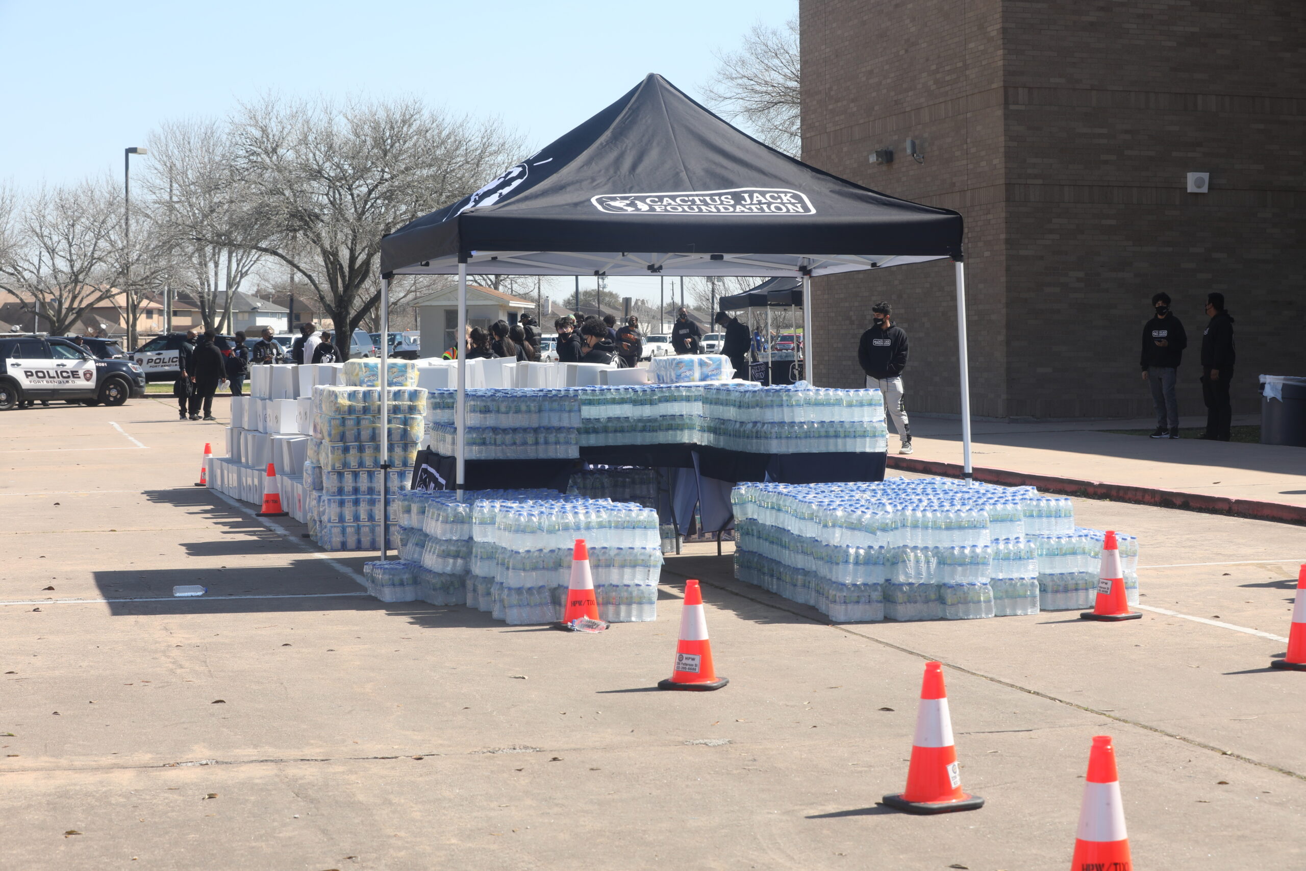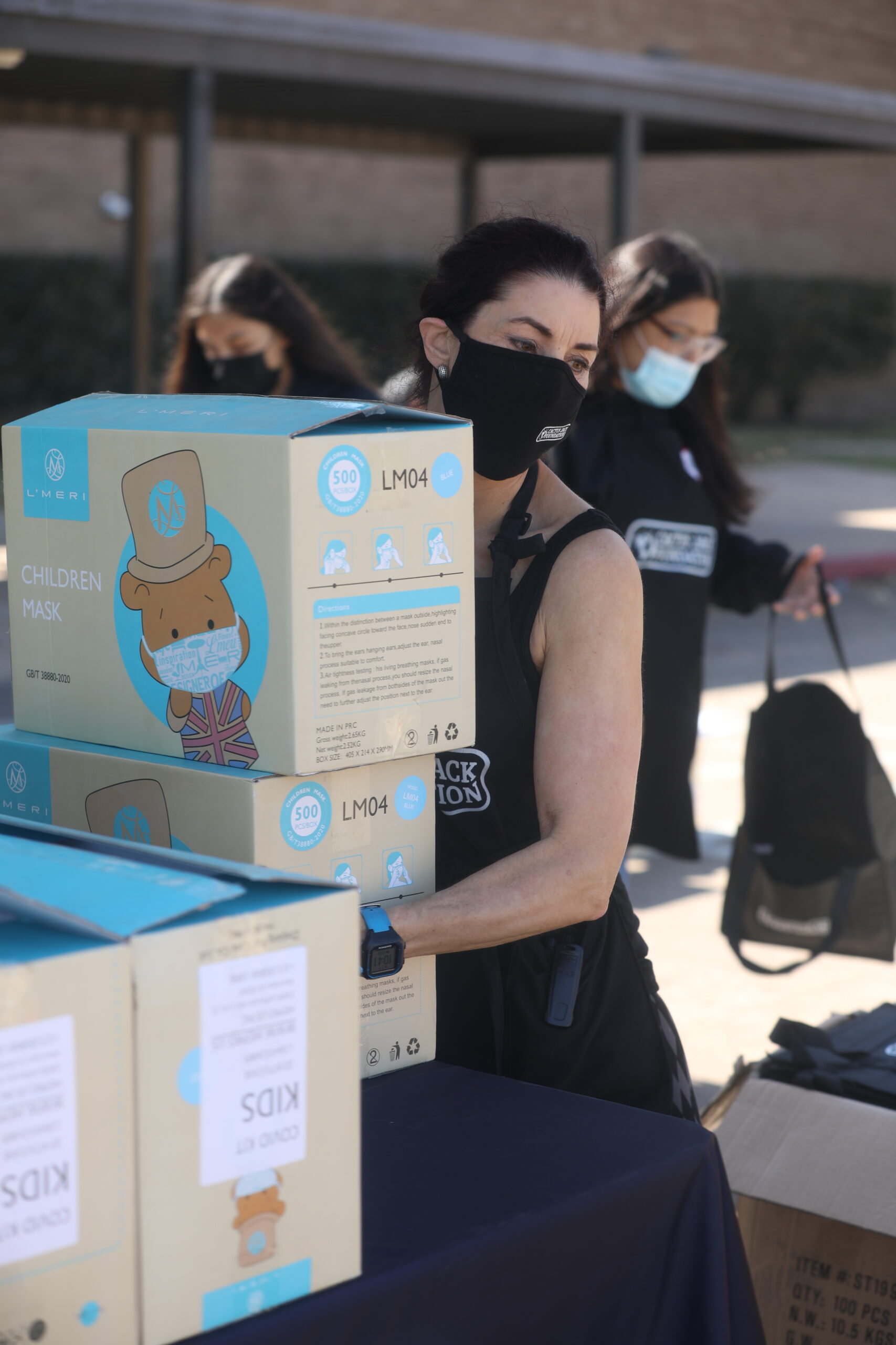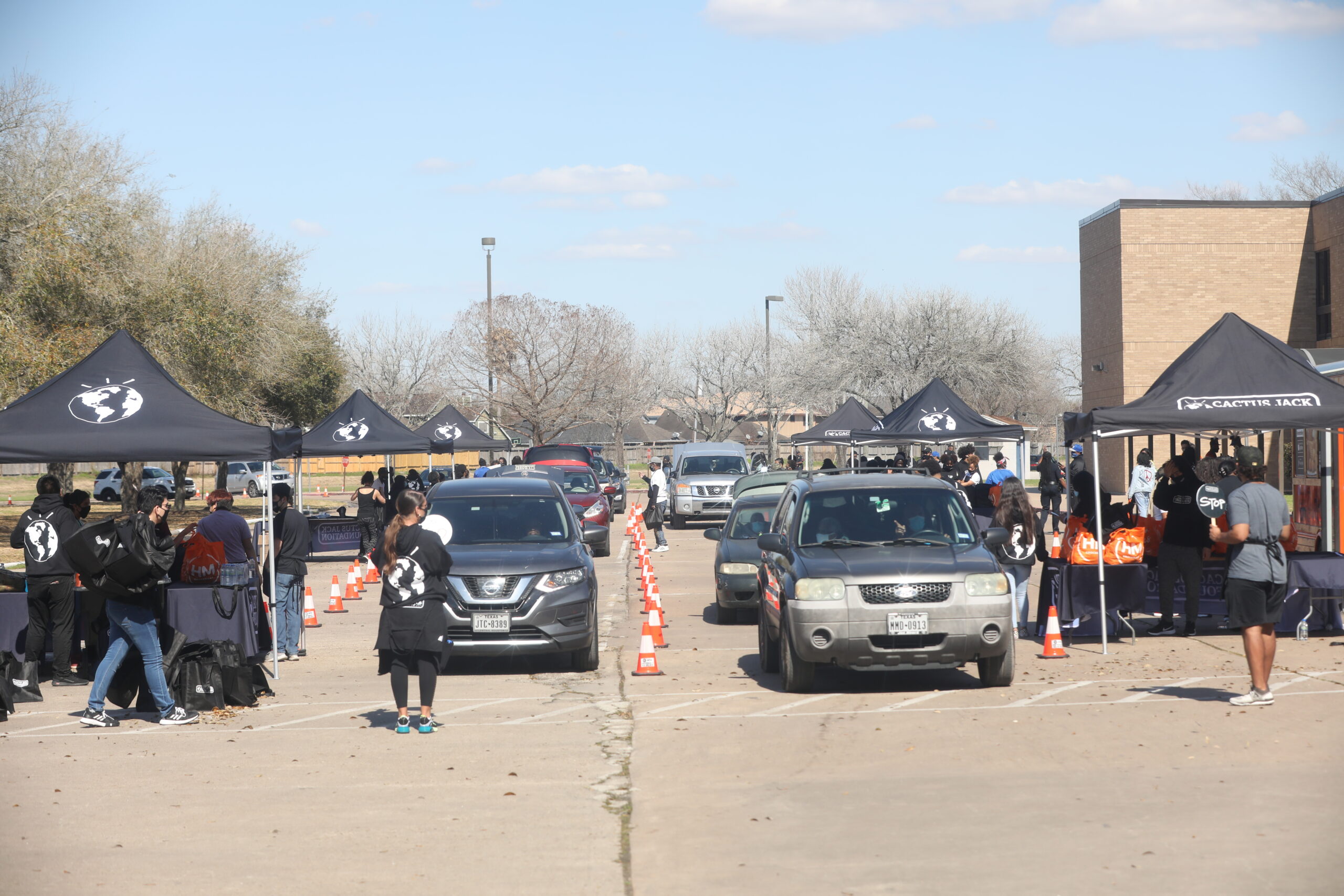 Scott’s mother and siblings were present at Willowridge High School. The contactless-event was only available through drive-up pick-up. Over 1,000 families received fresh produce, canned food, water, masks, and PPE gear. HCA Houston Healthcare provided volunteers. Fort Bend Independent School District provided school campus police as well as student and staff volunteers.
