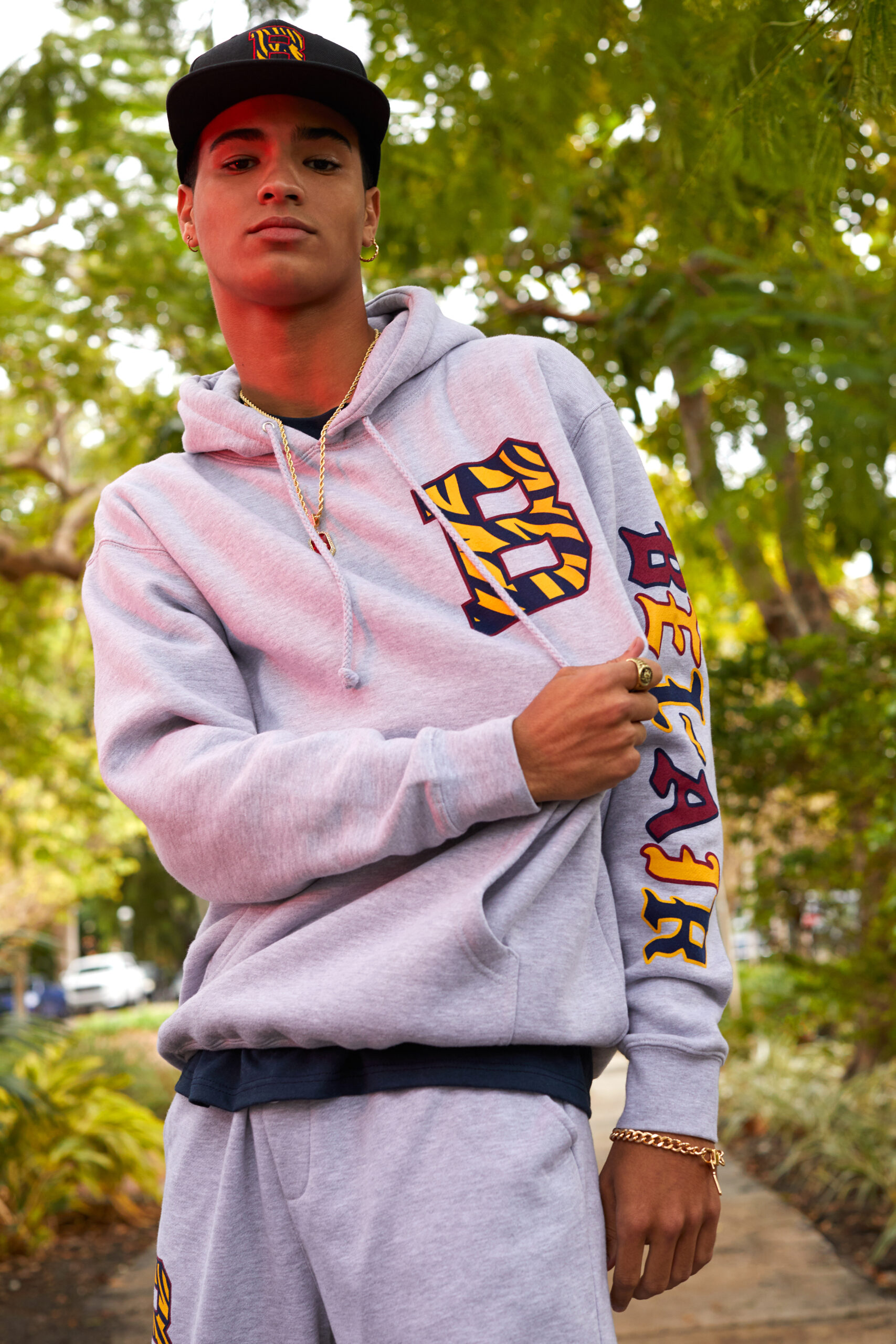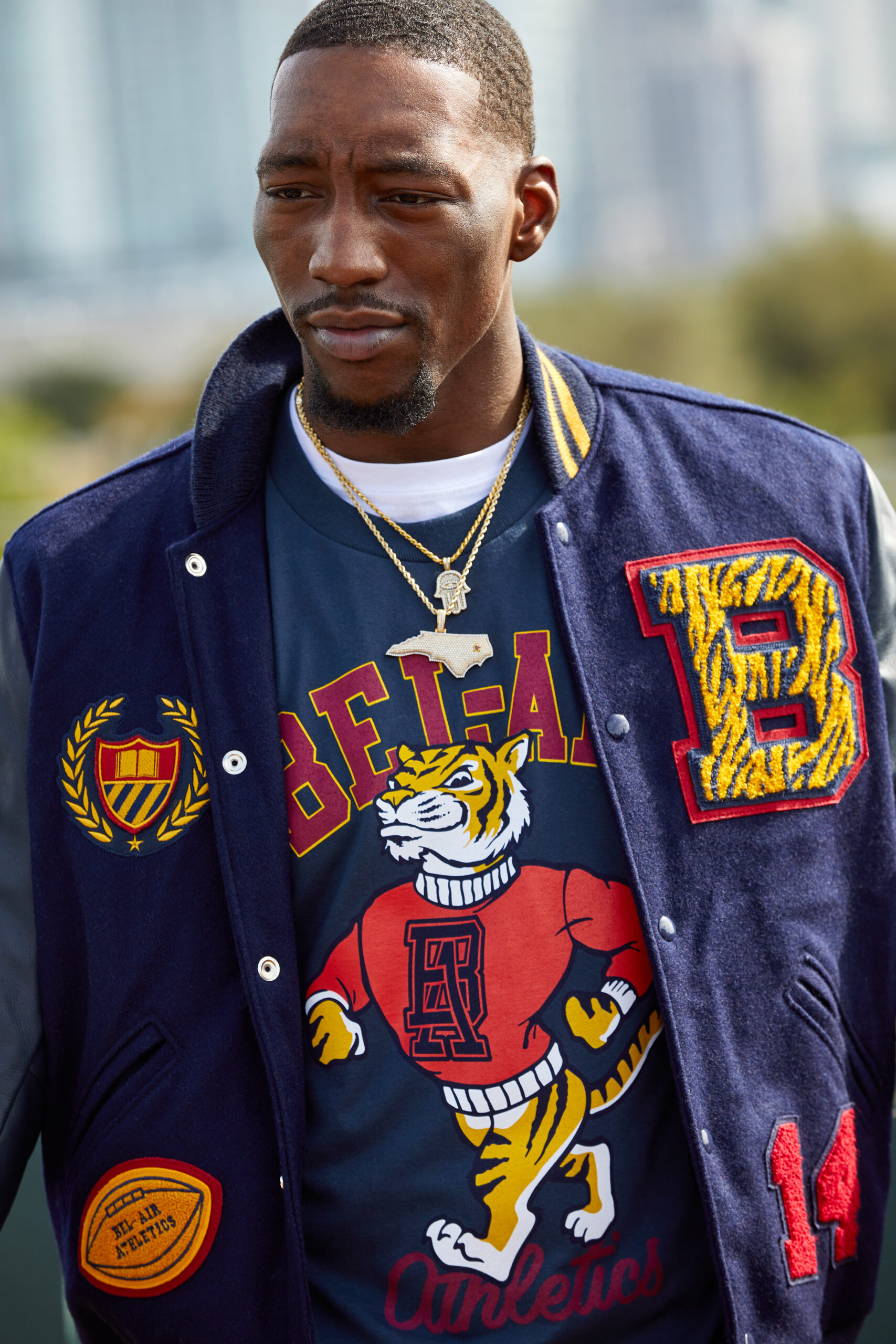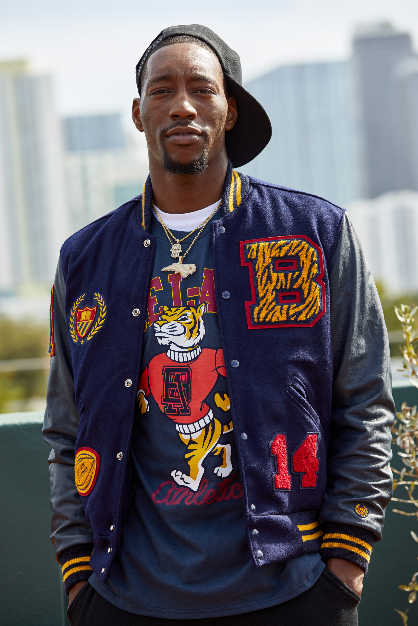 The 24-piece, unisex line includes the Bengal Varsity Jacket, the Split-Time Hoodie, the VK Miami tees, the Bel-Air Bengal tee, and Bengal Socks. Miami Heat All-Star Bam Adebayo was named one of the ambassadors for “Bel-Air Miami (Home/Away).”