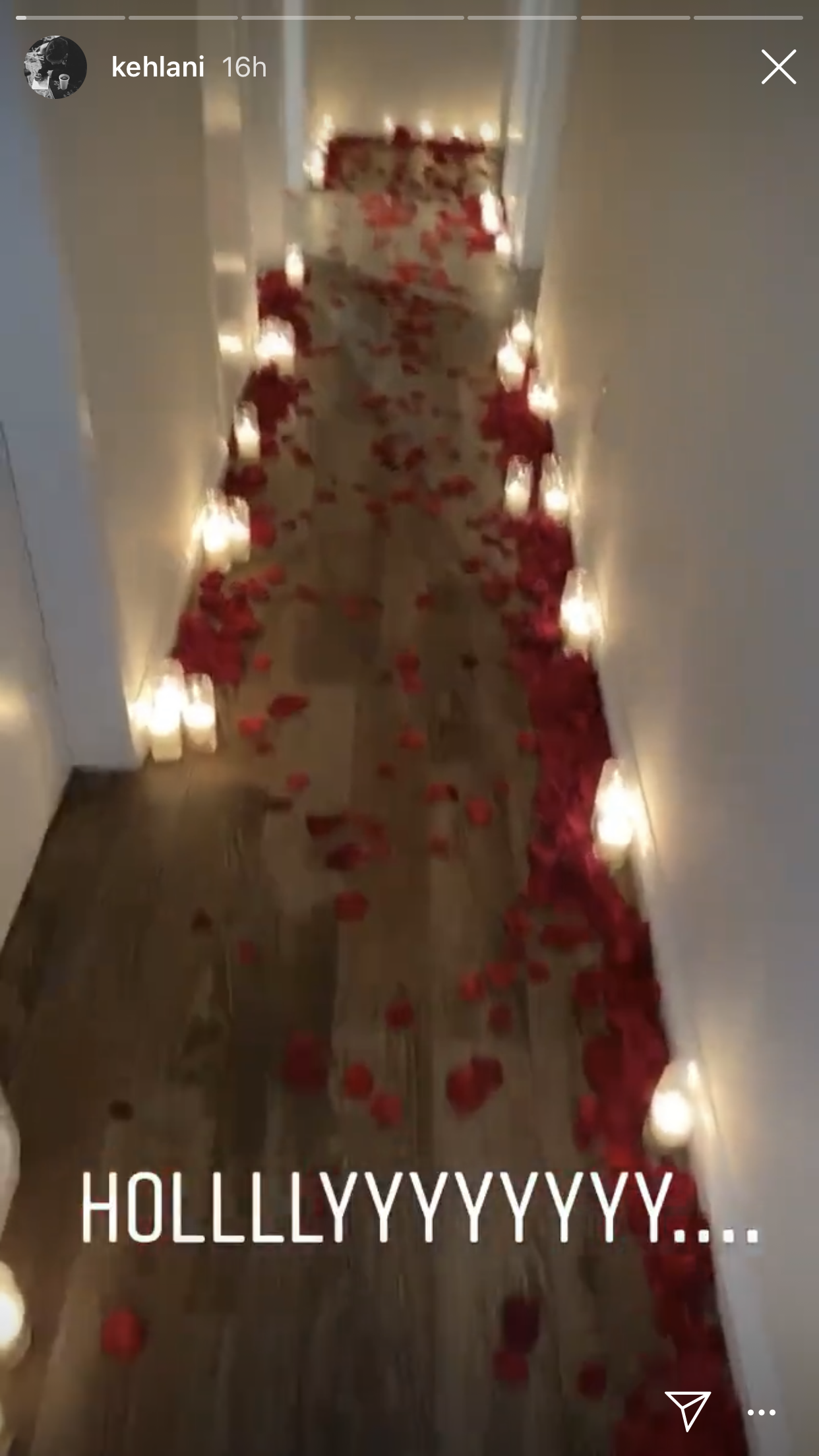 Saturday night, Kehlani posted her bedroom filled with red rose petals and a big teddy bear laying across her bed.