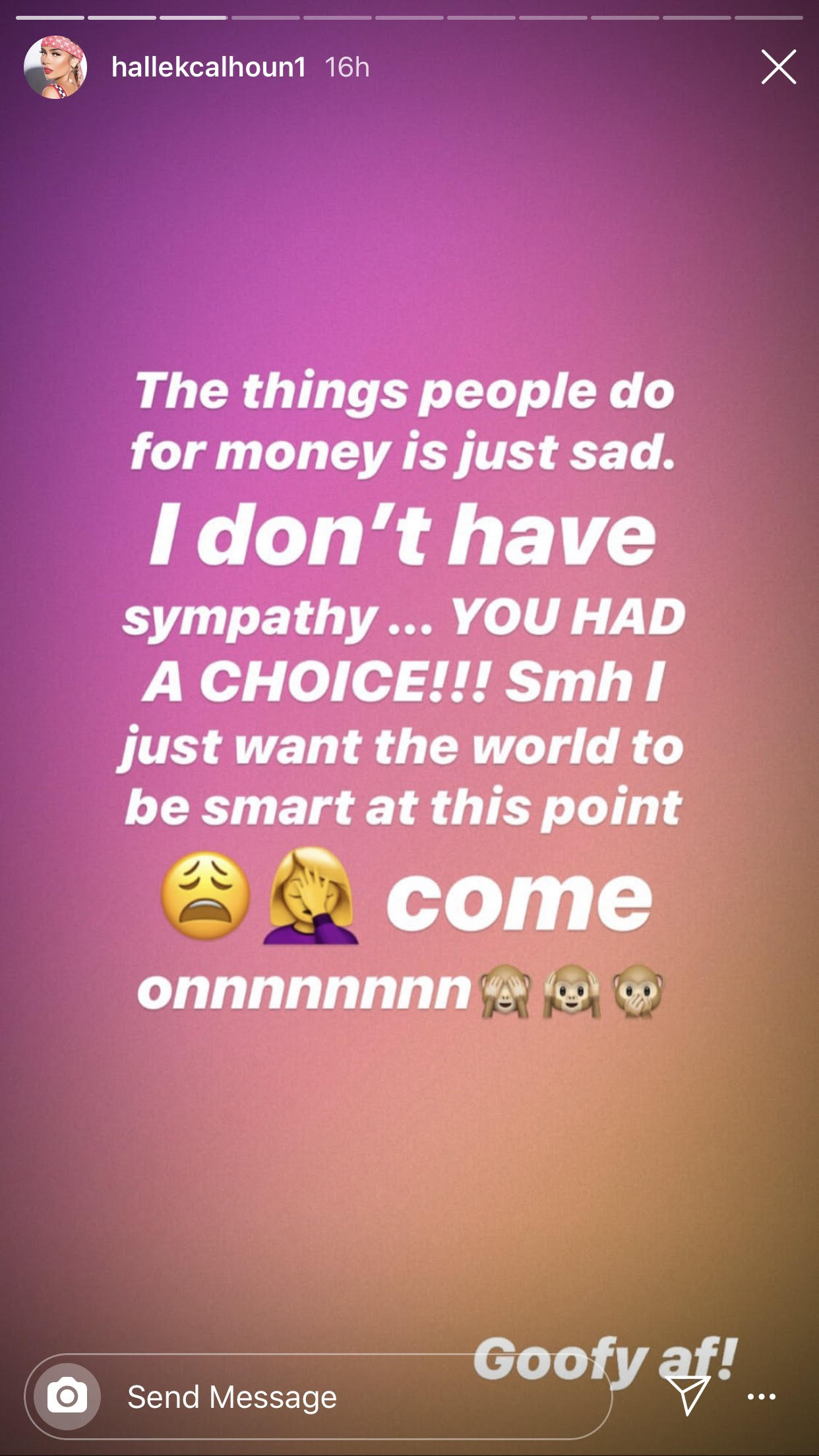 Kelly’s ex-girlfriend, Halle Calhoun, took to Instagram to basically counter-argue Savage’s claims stating, “The things people do for money is just sad. I don’t have sympathy …YOU HAD A CHOICE!!! Smh I just want the world to be smart at this point come onnnnnnnn. Goofy af!”